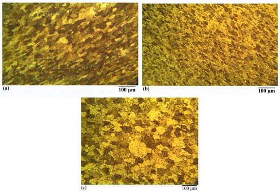 The microstructure was characterized using metallography based on ASTM-E3-11 [25] and application of light optical microscopy (LOM, Olympus, Tokyo, Japan). The etchant consisted of 2.58 vol % picric acid, 10.82 vol % acetic acid, 10.82 vol % water, and 75.78 vol % ethanol was applied for 5 s to reveal the microstructure.