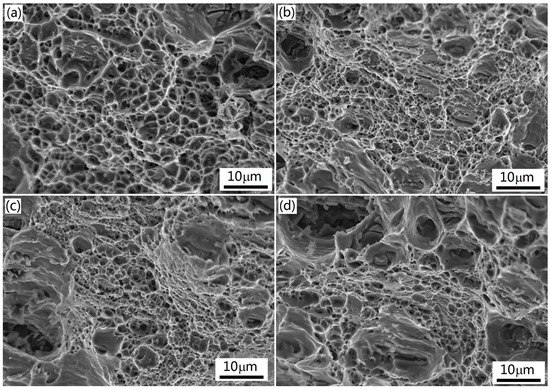 The fracture surfaces of the hot bands. (a) Alloy 1; (b) Alloy 2; (c) Alloy 3; (d) Alloy 4.