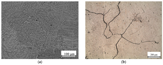 Microstructure of reference alloy Al10Mg: (a) as-cast, SEM (b) solution treatment at 440 °C, 3 h, water quenching and aging at 200 °C, 3 h, OM.