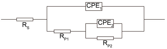 The equivalent circuit shown in Figure 8 was applied to fit the data. Rs is the solution resistance, CPE is the constant-phase elements, Rp = Rp1 + Rp2 expresses corrosion resistance. CPE contains two parameters, one is Y, another is n, a dimensionless exponent. The fitting results are described in Table 2. It was found that the corrosion resistance Rp of the coated specimen was much larger than uncoated 35CrMo substrate, and it was confirmed that the corrosion resistance of the coated specimen had improved.
