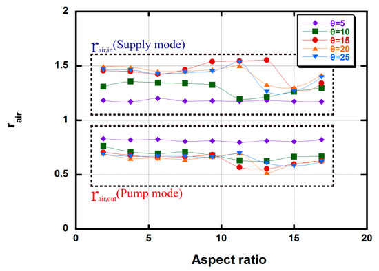 In the supply mode, the ratio of the inlet flow of the diffuser to that of the nozzle is defined as rair,in: