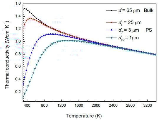 - Dong, H.; Wen, B.; Melnik, R. Relative importance of grain boundaries and size effects in thermal conductivity of nanocrystalline materials. Sci. Rep. 2014, 4, 7037. [Google Scholar] [CrossRef] [PubMed]