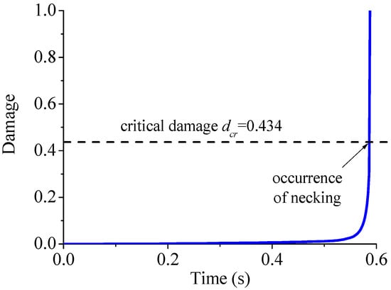 Illustration of the prediction of the occurrence of necking when the critical damage threshold is taken as indicator.