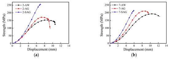 Tensile curves of welded joints after different kinds of PWHTs: (a) sample No. 2; (b) sample No. 7.