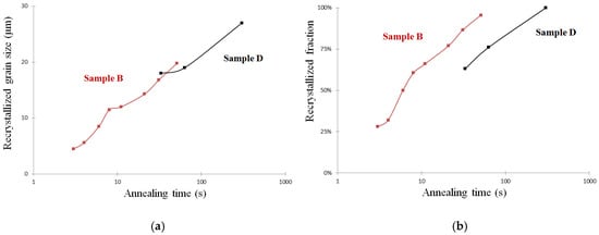 3.3. Post-dynamic Evolution Starting from Higher DRX Volume Fractions (Sample B, Strain 0.55, DRX 26%, and Sample C, Strain 2.0, DRX 65%)