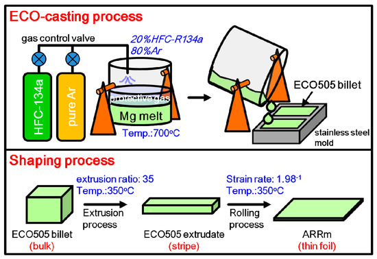 At present, the global demand of Mg materials is increasing year by year. It therefore follows that the demand will further increase once Mg-based medical devices are widely accepted in clinical practice. However, the casting procedure of Mg alloys always needs to use a great amount of SF6 (a potent greenhouse gas), which can accelerate global warming [18]. To mitigate this shortcoming, the SF6-applied casting procedure should be replaced by novel green ECO-casting techniques (using HFC-134a gas). In this study, to fabricate a highly functional medical device, a novel ECO-casting technique, which integrates a solid-solution heat treatment and surface treatment, was developed to produce an optimized biodegradable regeneration membrane for dental application using ECO-friendly Mg-5Zn-0.5Zr (named ECO505) alloy material.