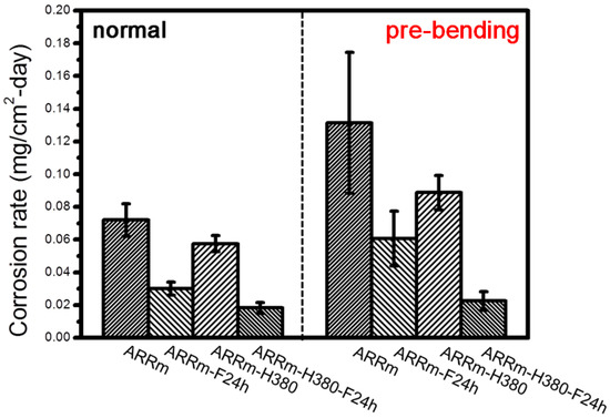 Corrosion rates calculated from un-bent/immersion (marked as normal) and pre-bent/immersion test (marked as pre-bending).