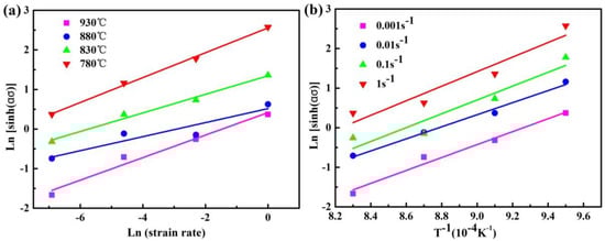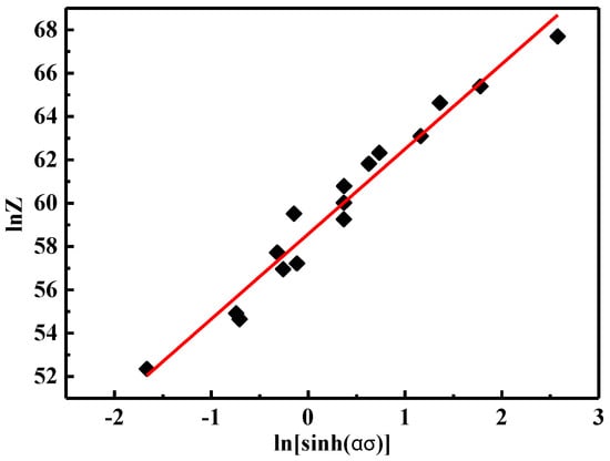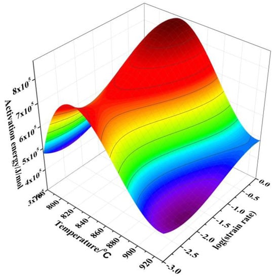 - The constitutive equation is constructed and the average deformation activation energy is calculated to be 592.7 kJ/mol. The constitutive equations for the current alloy are: