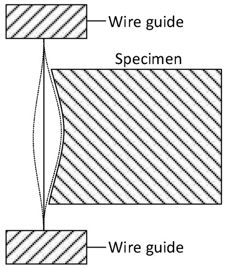 The subsequent cutting process is very critical to the achieved accuracy of the residual stress cross section in the contour method. Ideally, this machining process should not remove any material or provide any plastic deformation [2]. Today the WEDM process is the cutting process that comes closest to this ideal, since it is a non-contacting process, where the cut is performed by spark erosion, and localized plastic deformation consequently is minimized. However, the process suffers from minor edge effects, which have been thoroughly described and analyzed in literature [20,21,22]. The reason for these effects can be attributed to what is known as barreling, as illustrated in Figure 8.