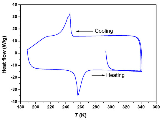 The DSC curve during the heating/cooling process of the as-quenched sample is shown in