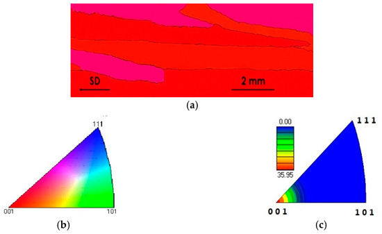 Figure 2) illustrate that the columnar-grained Cu-Al-Mn sample has a strong <001> oriented texture along the SD (solidification direction).