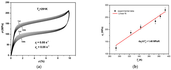 On the basis of the first cycle of the measured stress–strain curve in the temperature range of 291–393 K, the MT critical stress (σ