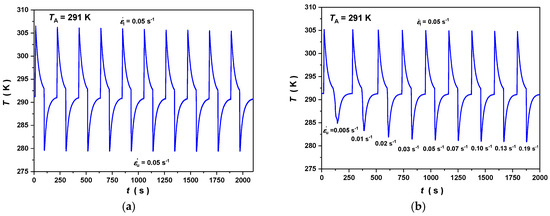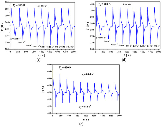 Figure 5; that is, the absolute values of the temperature change between loading and unloading are not equal. For example, when the strain rate is 0.05 s