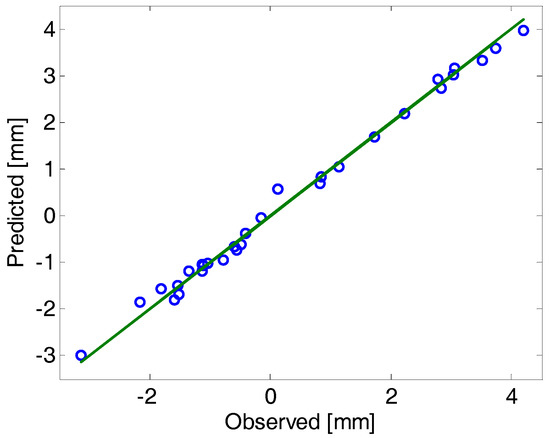 Predicted vs. observed result for RBF with multiquadratic basis function.