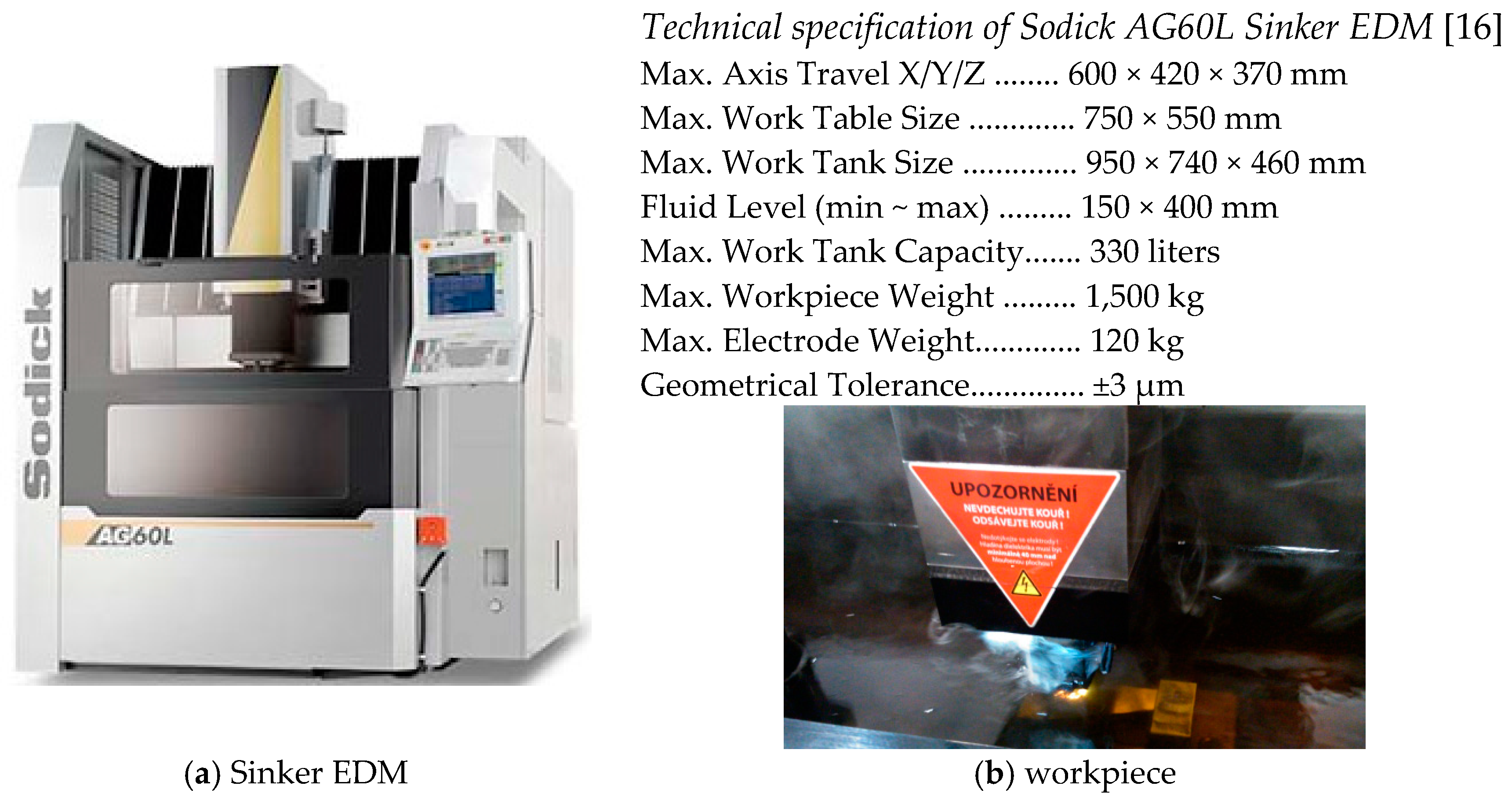 - Sodick Technical Specifications. Available online: http://www.sodick.com/products/sinkeredm/ag60l.htm (accessed on 17 August 2016).
