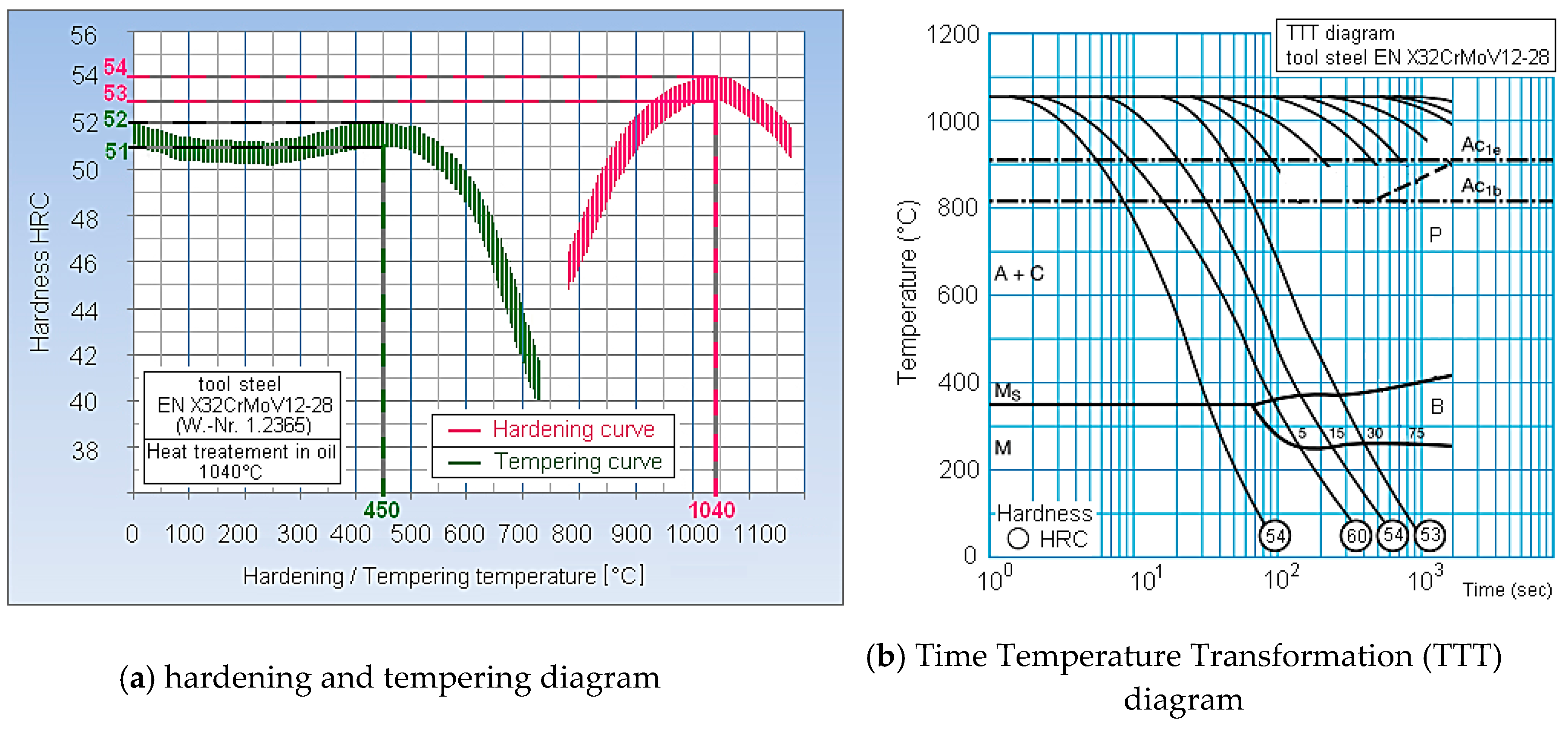 - Material Card of Steel EN X210Cr12. Available online: http://www.usbcosteels.com/pdffile/OCR12.pdf (accessed on 18 April 2016).