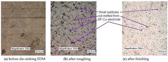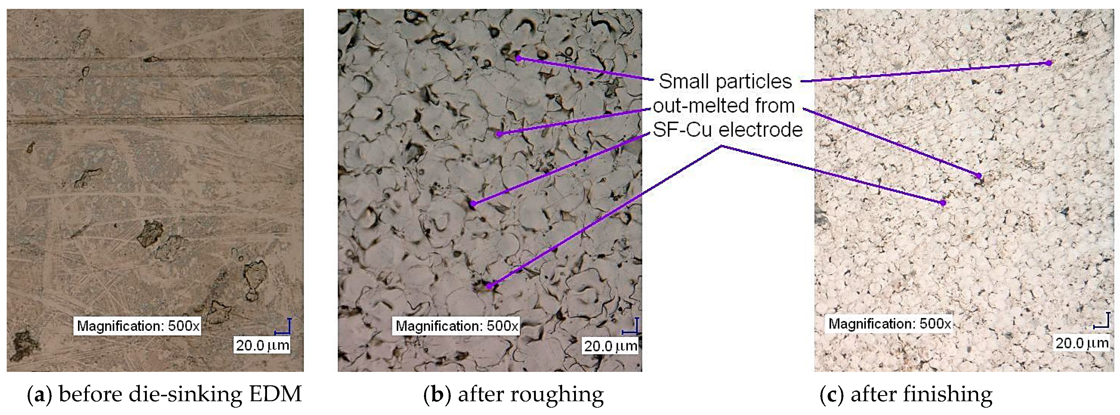 - Marafona, J. Black layer characterisation and electrode wear ratio in electrical discharge machining (EDM). J. Mater. Process. Technol. 2007, 184, 27–31. [Google Scholar] [CrossRef]