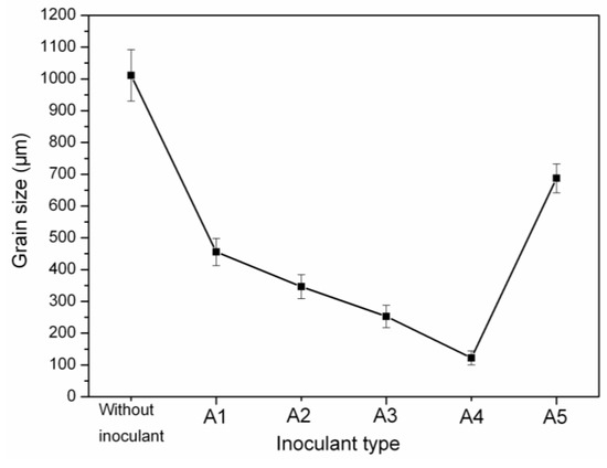 Grain sizes of the as-cast sample inoculated by different inoculants.