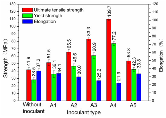 Mechanical properties of the as-cast samples after inoculation with different inoculants.