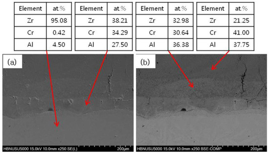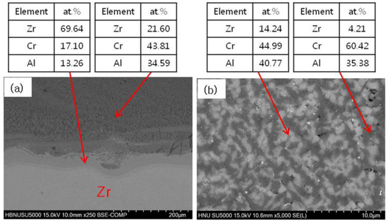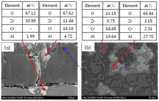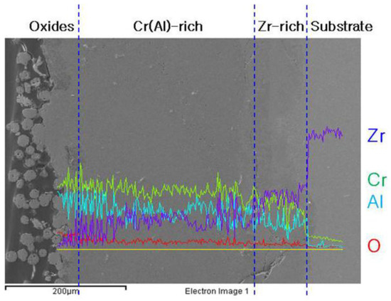 3.2. CrAl Laser-Coated Zr Alloy that Exposed to a High Temperature