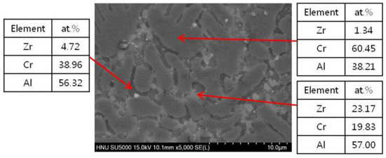 - Liquid + Al2Zr → Cr + Al3Zr at 1255 °C