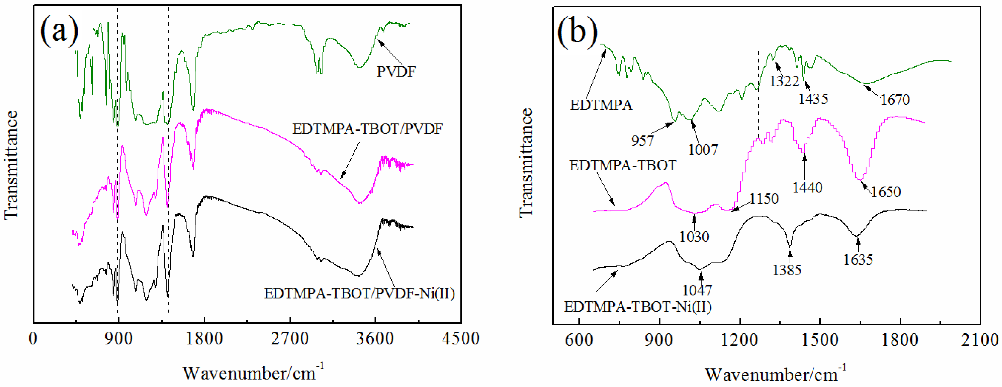 - The combination of DFT simulations and the adsorption experiments is suitable for evaluating the adsorption process between Ni(II) and the EDTMPA-TBOT/PVDF chelating membrane.