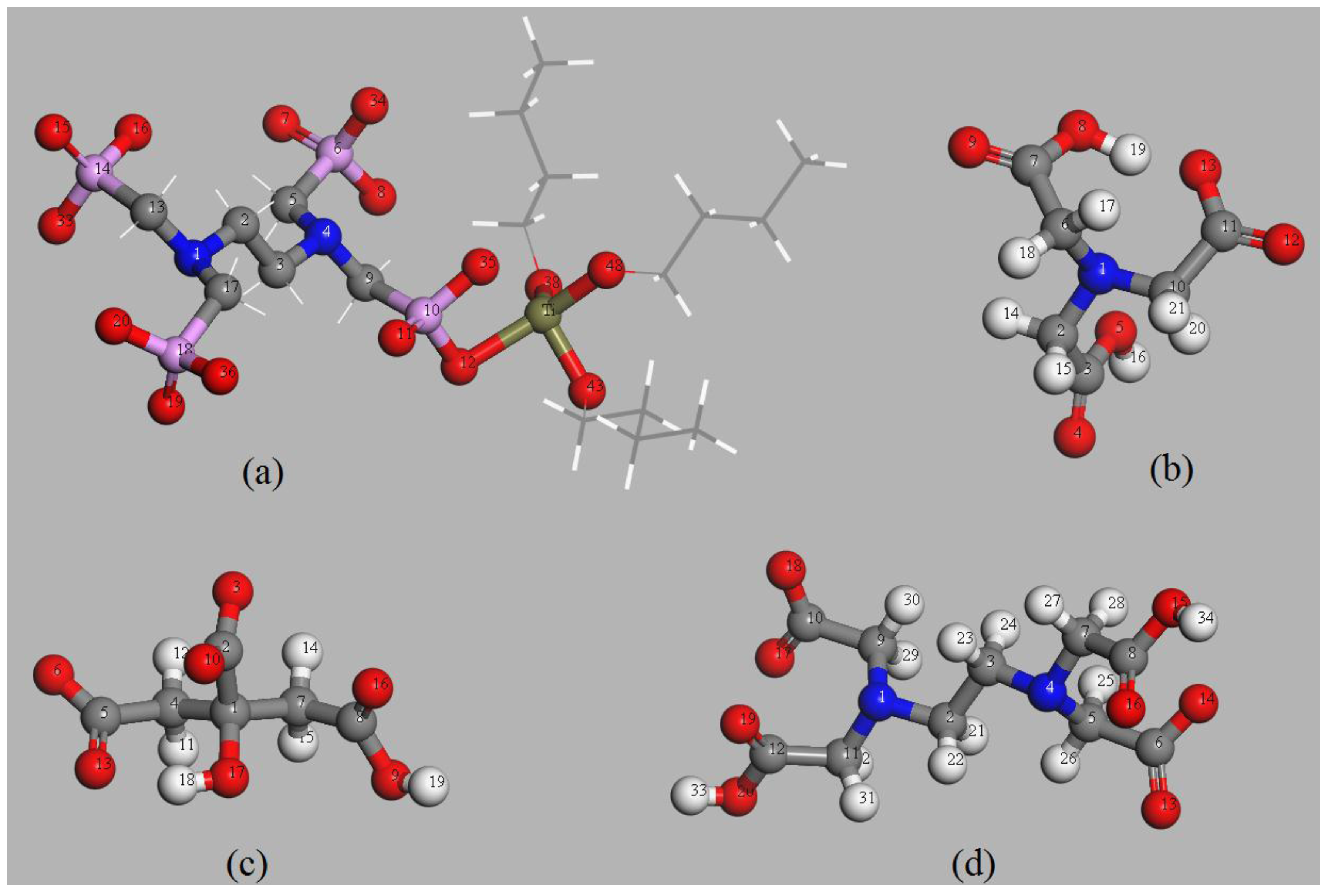 3.4.3. Complexing Sites of the EDTMPA-TBOT Ligand