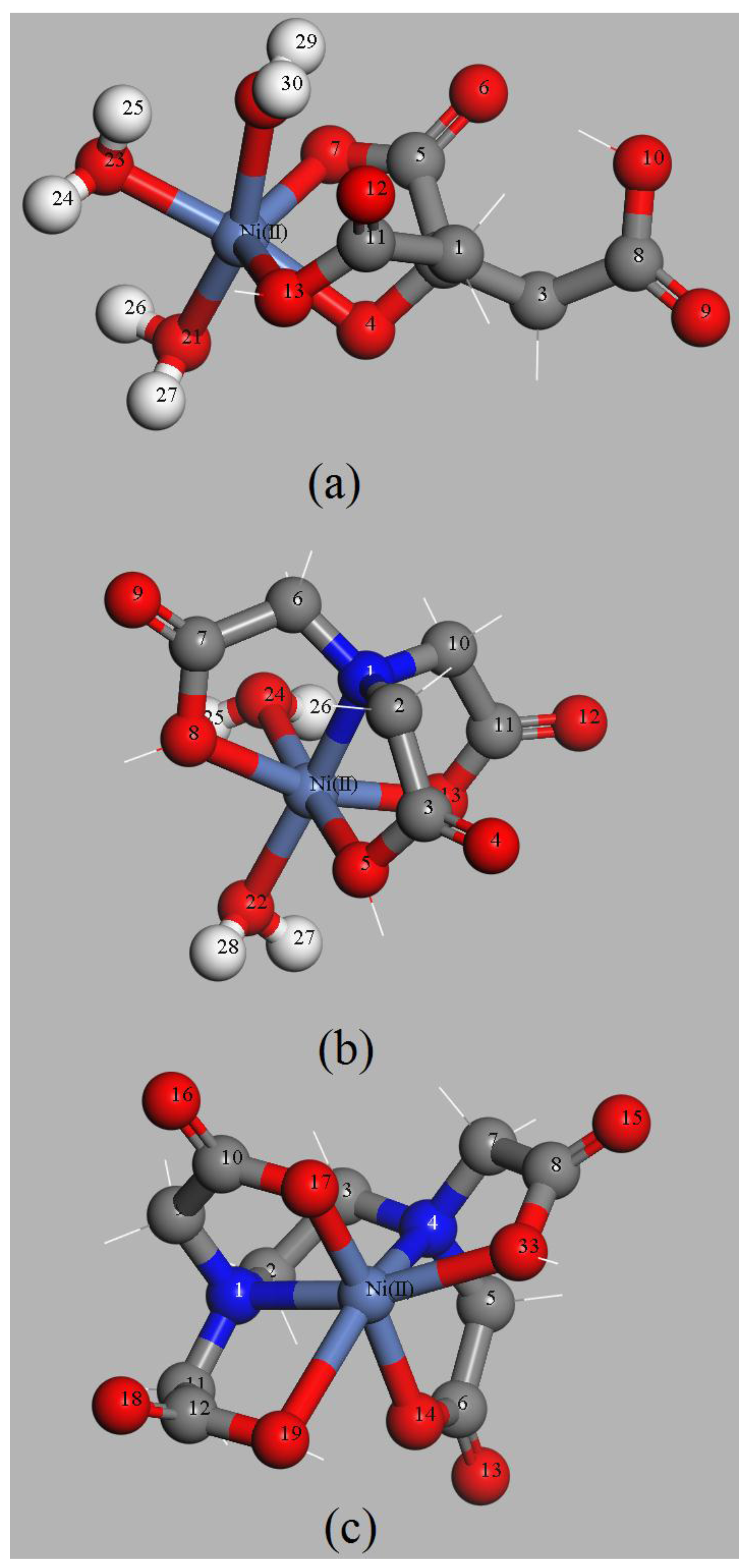 - Song, L.Z.; Zhao, X.D.; Fu, J.; Wang, X.L.; Sheng, Y.P.; Liu, X.W. DFT investigation of Ni(II) adsorption onto MA-DTPA/PVDF chelating membrane in the presence of coexistent cations and organic acids. J. Hazard. Mater. 2012, 199–200, 433–439. [Google Scholar] [CrossRef] [PubMed]