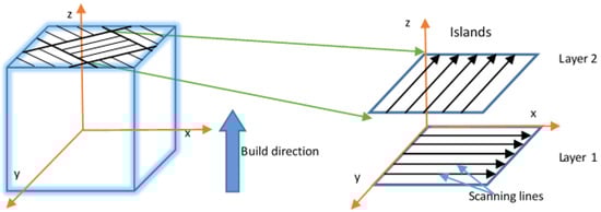 “Island” scanning strategy, shaped like checkerboards employed in the SLM process of 316L SS samples.