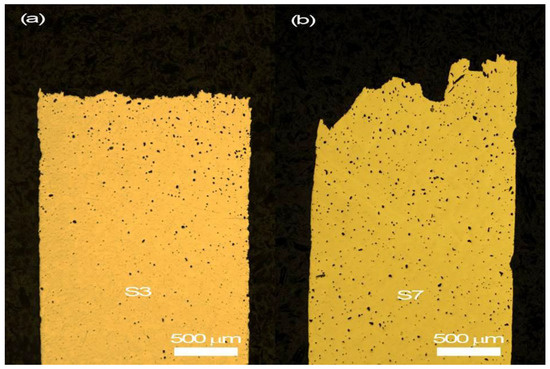 Macroscopic fracture surface of the tensile specimens (a) S3 and (b) S7.