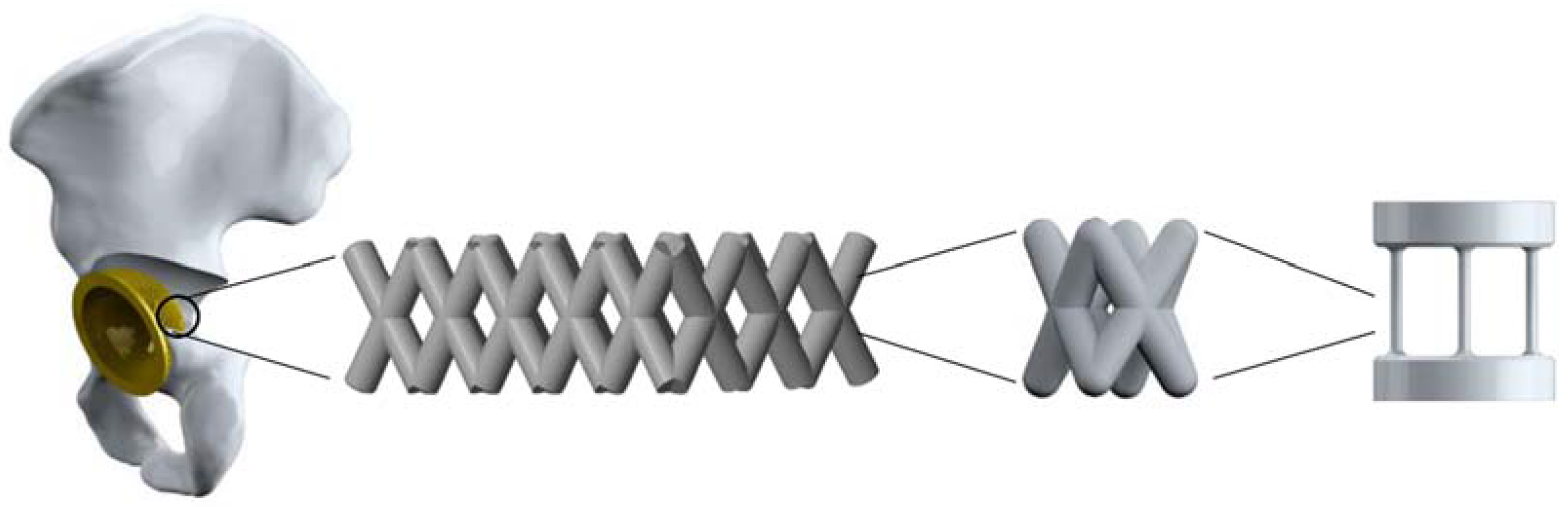 - Ahmadi, S.M.; Campoli, G.; Yavari, S.A.; Sajadi, B.; Wauthle, R.; Schrooten, J.; Weinans, H.; Zadpoor, A.A. Mechanical behavior of regular open-cellporous biomaterials made of diamond lattice unit cells. J. Mech. Behav. Biomed. Mater. 2014, 34, 106–115. [Google Scholar] [CrossRef] [PubMed]