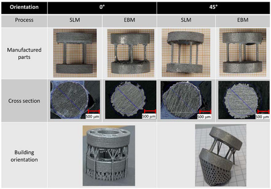 Weißmann, V.; Drescher, P.; Bader, R.; Seitz, H.; Hansmann, H.; Laufer, N. Comparison of Single Ti6Al4V Struts Made Using Selective Laser Melting and Electron Beam Melting Subject to Part Orientation. Metals 2017, 7, 91. https://doi.org/10.3390/met7030091