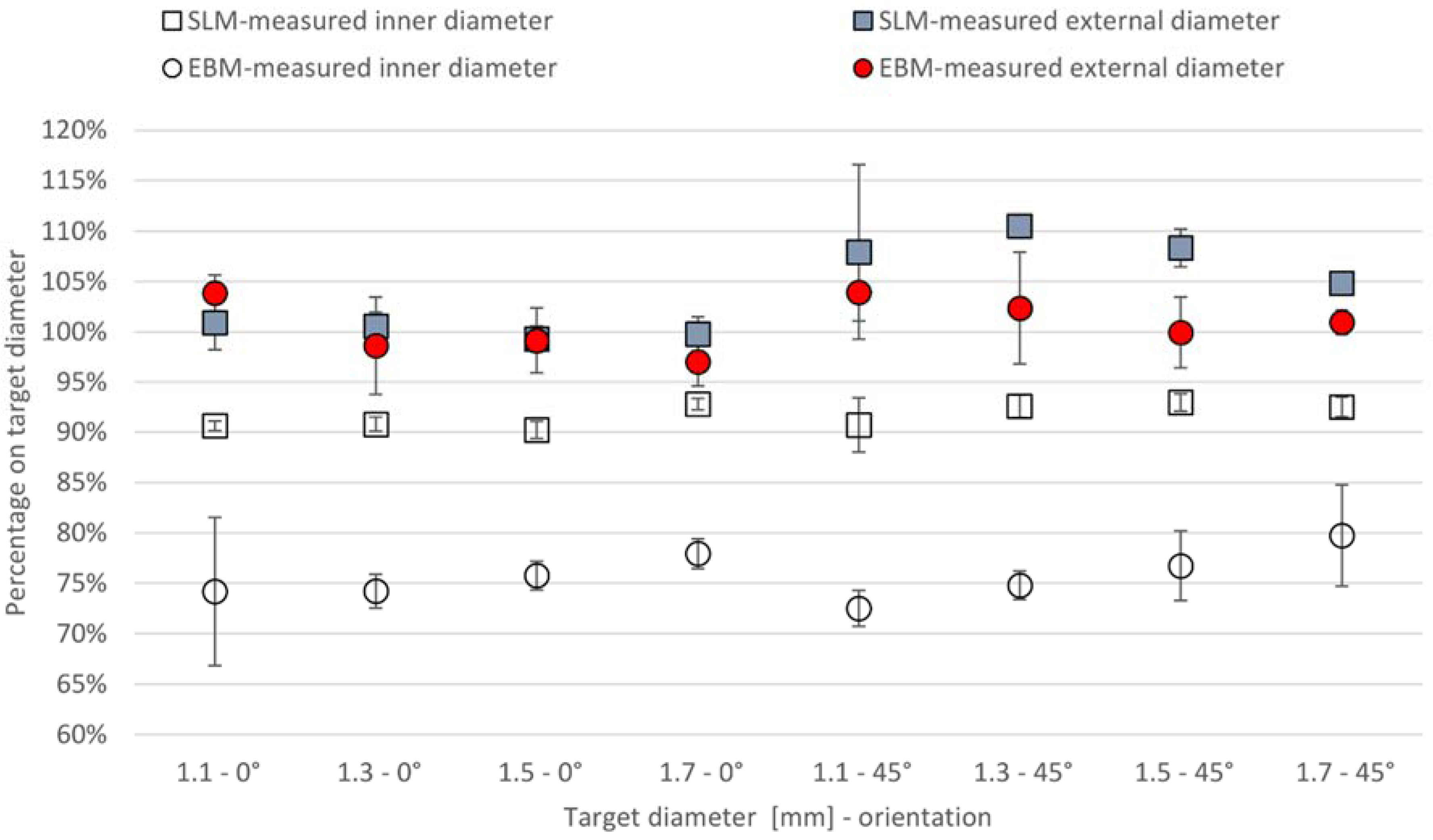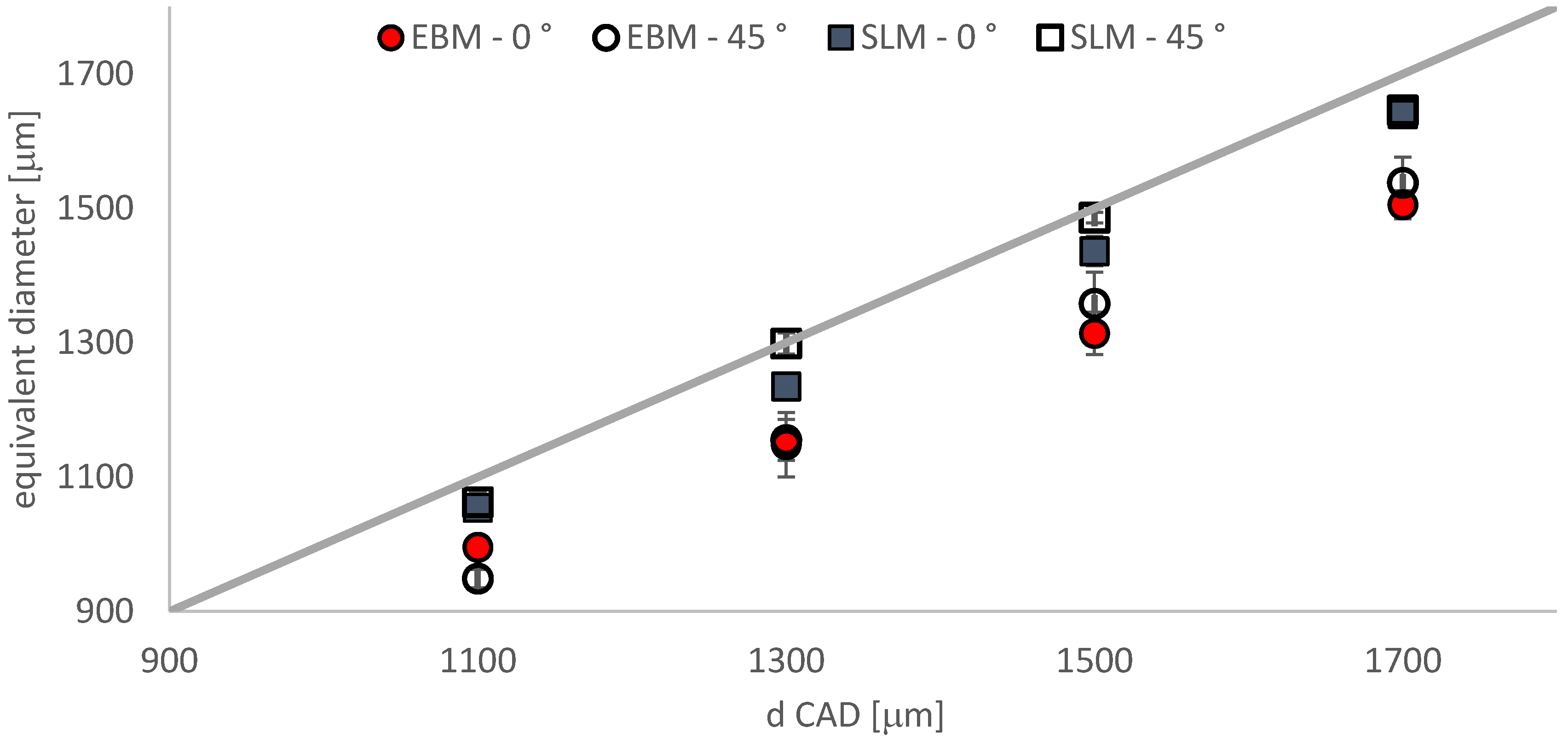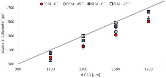| dCAD–Orientation | EBM (μm) | SLM (μm) |
