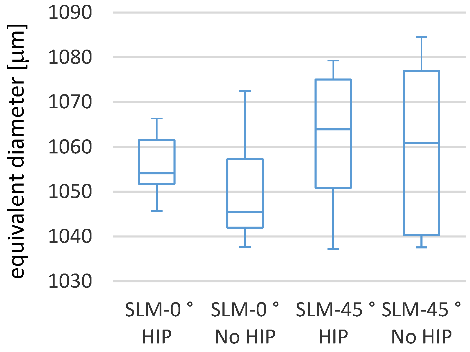 | Dimension | SLM HIP 0° | SLM No HIP 0° | EBM No HIP 0° | SLM HIP 45° | SLM No HIP 45° | EBM No HIP 45° | |||||||