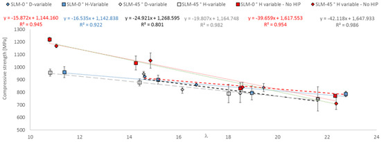 3.4. Compressive Strength as a Function of Geometrical Parameter