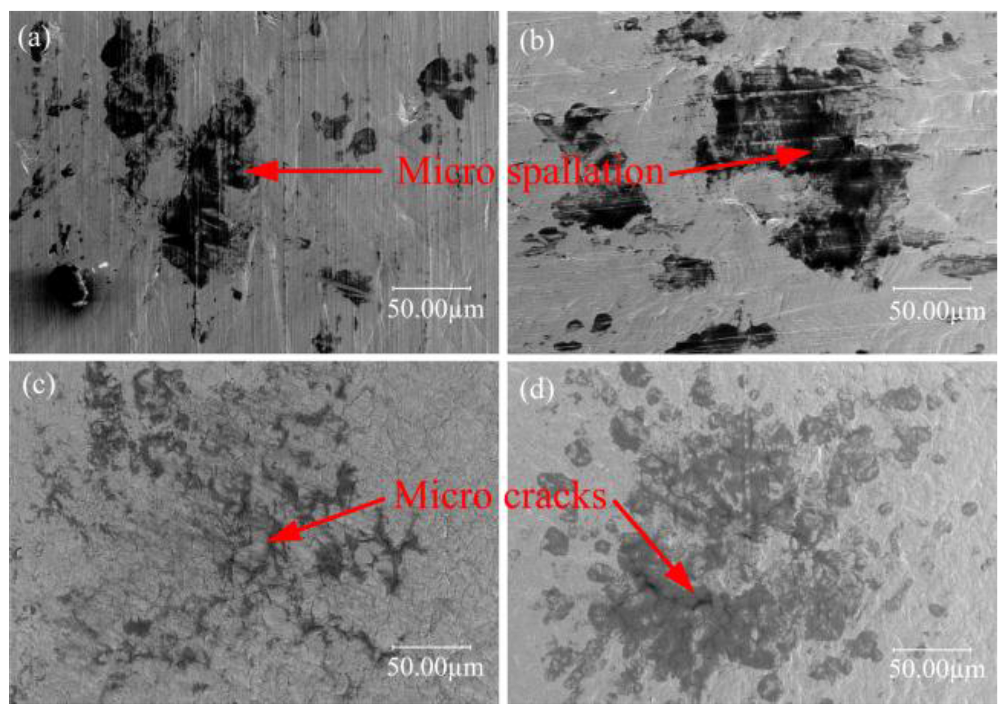 where Z1 is the wave impedance of PMMA, Z2 is the wave impedance of silicone rubber, Z1 = 0.32 × 106 g/cm2s, and Z2 = 0.47 × 106 g/cm2s [25]. Therefore, the peak pressure of the shock wave corresponding to 565 mJ and 835 mJ can be calculated according to the Equations (1) to (3), and were 1.6 GPa and 2.0 GPa, respectively. The detailed LFSB experimental parameters are listed in Table 3.