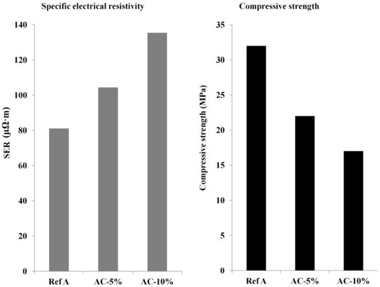 Specific electrical resistivity and compressive strength of anodes with different amounts of charcoal.