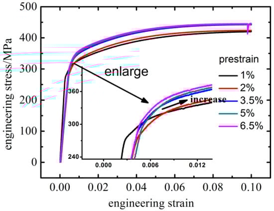 Engineering stress–strain cures of prestrained specimens after annealing (500 °C, 40 min).