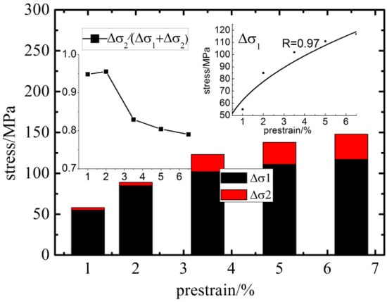 where a1 and a2 are constants. Thus, the variation of dislocation hardening stress (Δσ1) with prestrain (εpre) should satisfy the following relationship: