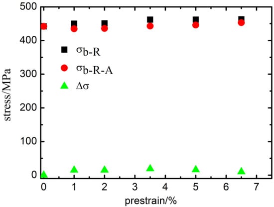 Decline of ultimate tensile strength after annealing: σb-R, σb-R-A, Δσ represent tensile strength of prestrained specimens, prestrained specimens with annealing and the difference between prestrained and prestrained specimens with annealing.