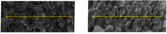 At the highest sintering temperature of 1000 °C, one can observe a better contact between reinforcement particles and matrix, as presented in Figure 7c,d. The dimple size decreases with an increase in TiC content from 10 to 20 vol % as seen in Figure 8. The presence of more reinforcement particle content in the copper matrix prevents dimple growth. The fracture behavior of these nanocomposites also depicts a mixed mode, with the brittle mode of fracture being the predominant one. The fracture surface of both composites indicate nearly flat surface, minimal plastic deformation preceding the fracture occurs. The microscopic characteristics include faceted surface and transgranular fracture of Cu grains in the composites.