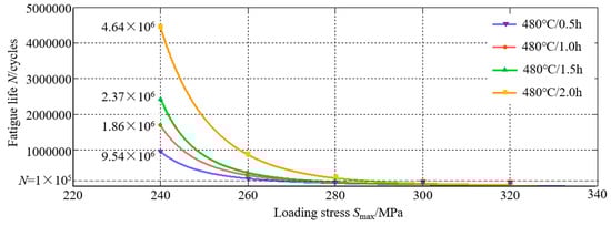 S-N curves of the 7075 aluminum alloy under different solution times.