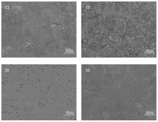 SEM images of specimens after immersion for 4 h in 50 wt % H2SO4 solution: (a) BM; (b) CGHAZ; (c) FGHAZ; (d) ICHAZ.