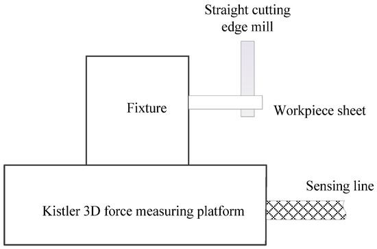 The down-milling experiments were carried out under dry conditions. A computer numerical control milling machine (type YHVT850Z, Yonghua Machinery Co. Ltd., Yanzhou, China), whose spindle power is 5.5 kW and maximum spindle speed is 8000 rpm, was applied in our study. For orthogonal cutting with straight cutting edge mills, the workpieces were cut into sheets, as shown in Figure 2. Table 3 shows the detailed parameter levels during tests.