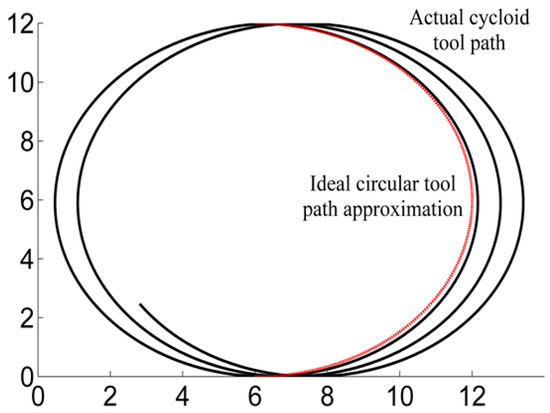 The actual cycloid tool path of a milling cutter and the widely-used ideal circular tool-path approximation.