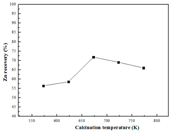 Zinc leaching recovery after roasting at different calcination temperatures.