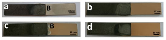 Solder joint appearance of FSKSW: (a) AZ31/DP600; (b) AZ31/non-zinc-coated DP600; (c) Mg/DP600; (d) Mg/non-zinc-coated DP600.