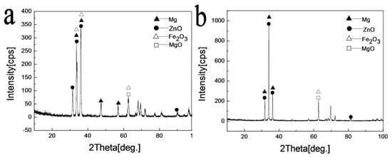 Figure 9a,b shows the result of the Mg99.50/DP600 using FSKSW and VDW, respectively. It can be indicated that the bonding surface using FSKSW mainly contains the intermetallic compounds including Mg, ZnO, Fe2O3, and MgO may exist. However, the bonding surface using VDW mainly contains Mg, ZnO, and Fe2O3 and MgO may exist.