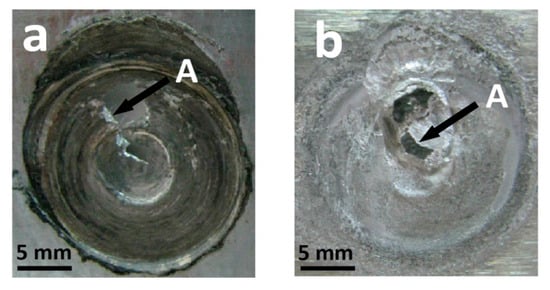 In this experiment the optimal process parameters, referred to the research results of other process parameters and combined with the experimental homework [,,,], were as follows: the diameter of the tool is 6.0 mm; the rotation speed of the tool is 1200 r/min; the diameter of the tool shoulder is 22 mm and the vertical descent of the shoulder is 0.2 mm [].