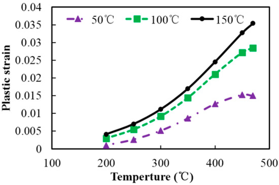 Plastic strains increase with the temperature when the temperature difference remains unchanged.
